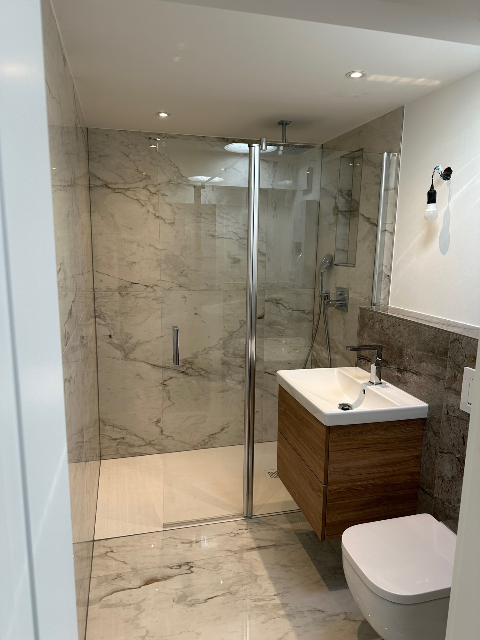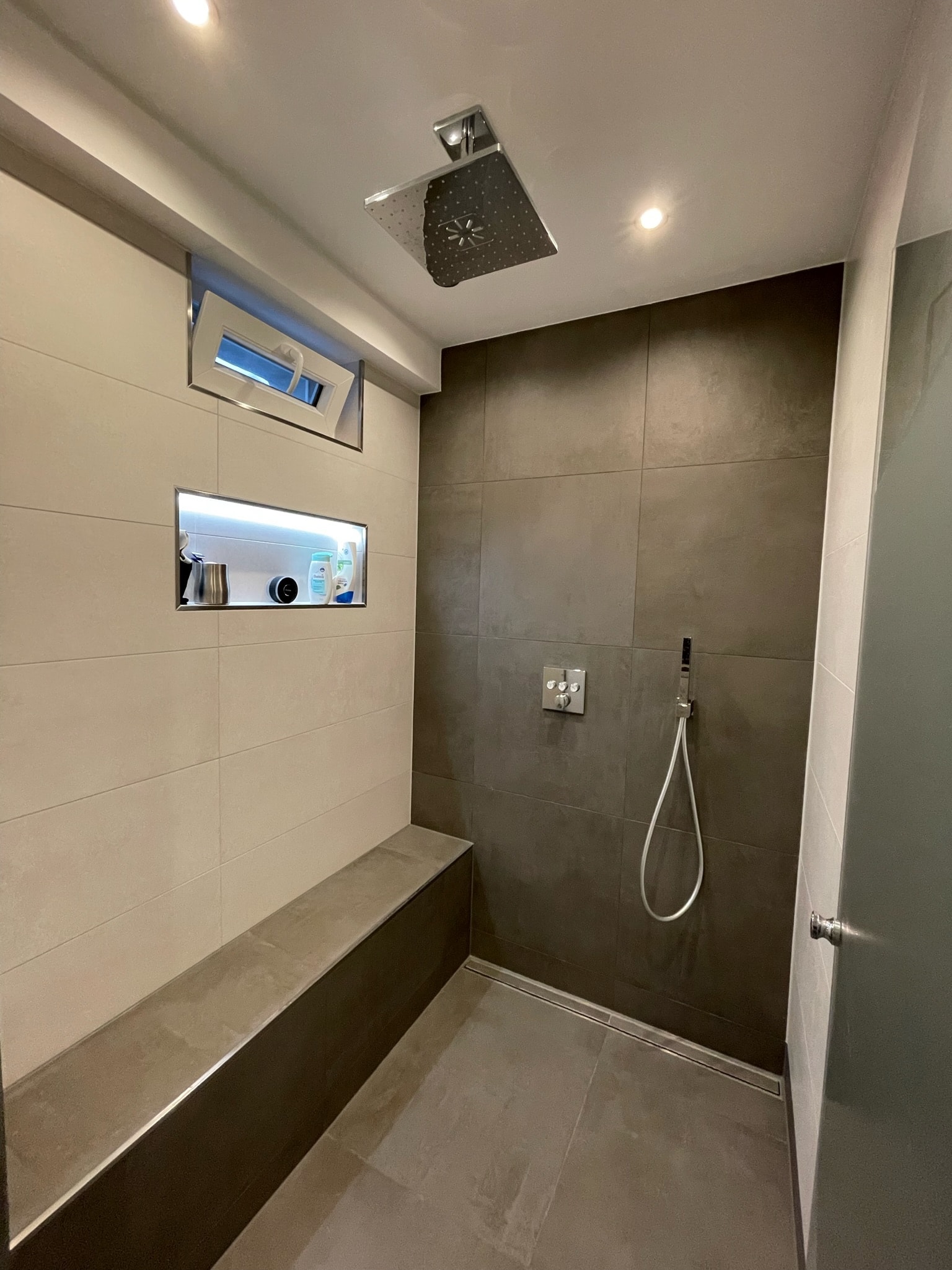 Mit einer Teilsanierung realisieren wird rutschhemmende Bodenfliesen, leicht erreichbare Sanitäreinrichtungen und auf eine Wunsch eine gemauerte Sitzbank, welche wir mit integrierter elektrischer Heizfunktion ausstatten können. So genießen Sie jederzeit eine warme Sitzfläche und Sicherheit. Barrierefreie Bäder sind längst mehr als eine Zukunftsinvestition. Sie verbinden modernes Design mit Alltagstauglichkeit, Komfort und hierfür ist nicht immer eine Komplettsanierung notwendig.