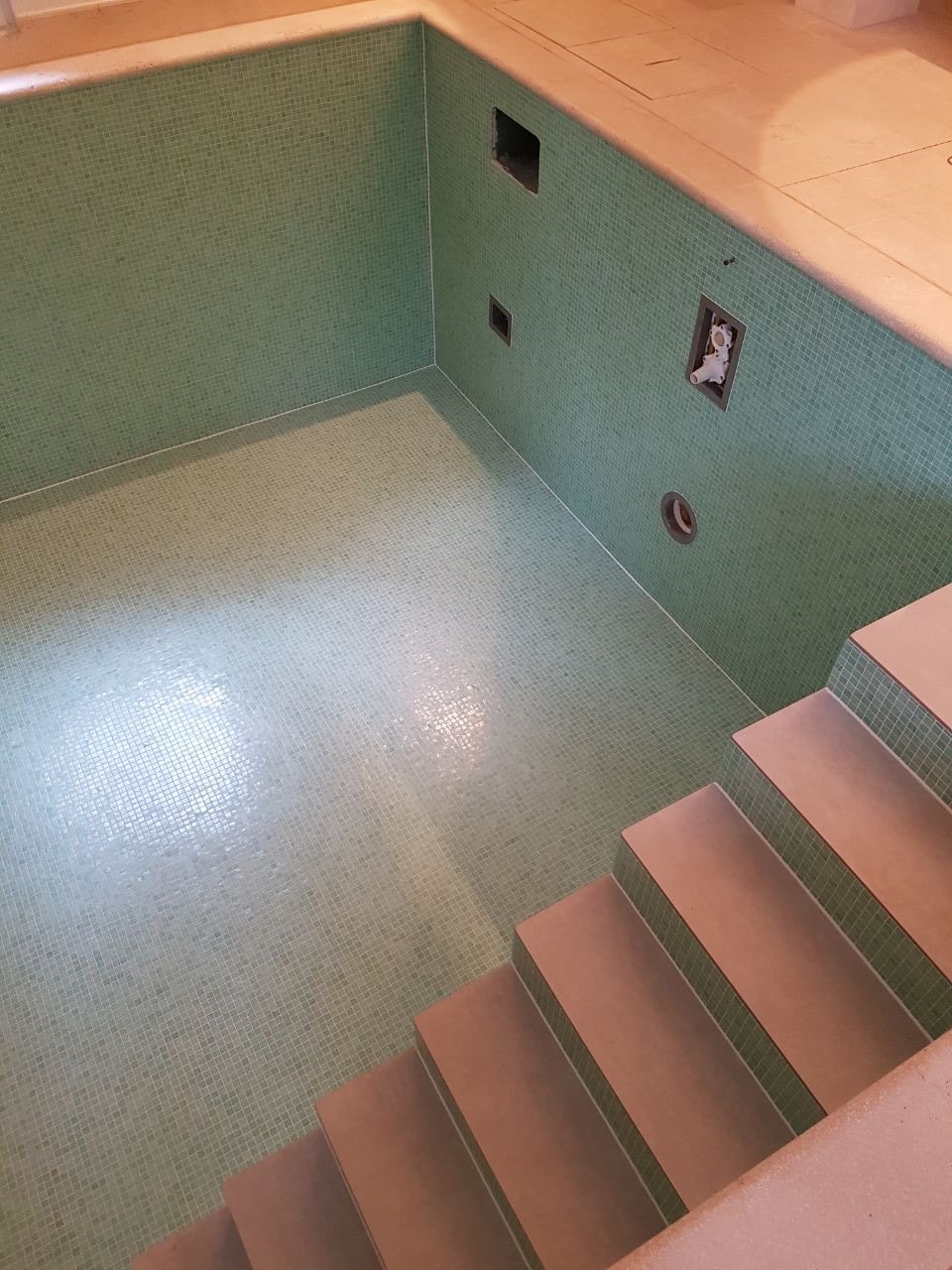 Ob innen oder außen, wir realisieren Ihre Wünsche rund um Ihren Poolbereich. Von maßgefertigten Treppenanlagen, über durchgehend geflieste Schwimmbeckenflächen bis zur Gestaltung von Sitzbereichen sorgen wir für ansprechende und sichere Oberflächen. Dabei beraten wir Sie gerne ausführlich, in unserer Ausstellung, zu rutschhemmenden Fliesen, ob Naturstein-Optik oder elegantes Mosaik. Sorgen Sie für ein Gefühl von Urlaub in Ihrem Schwimmbereich nach Wunsch.
